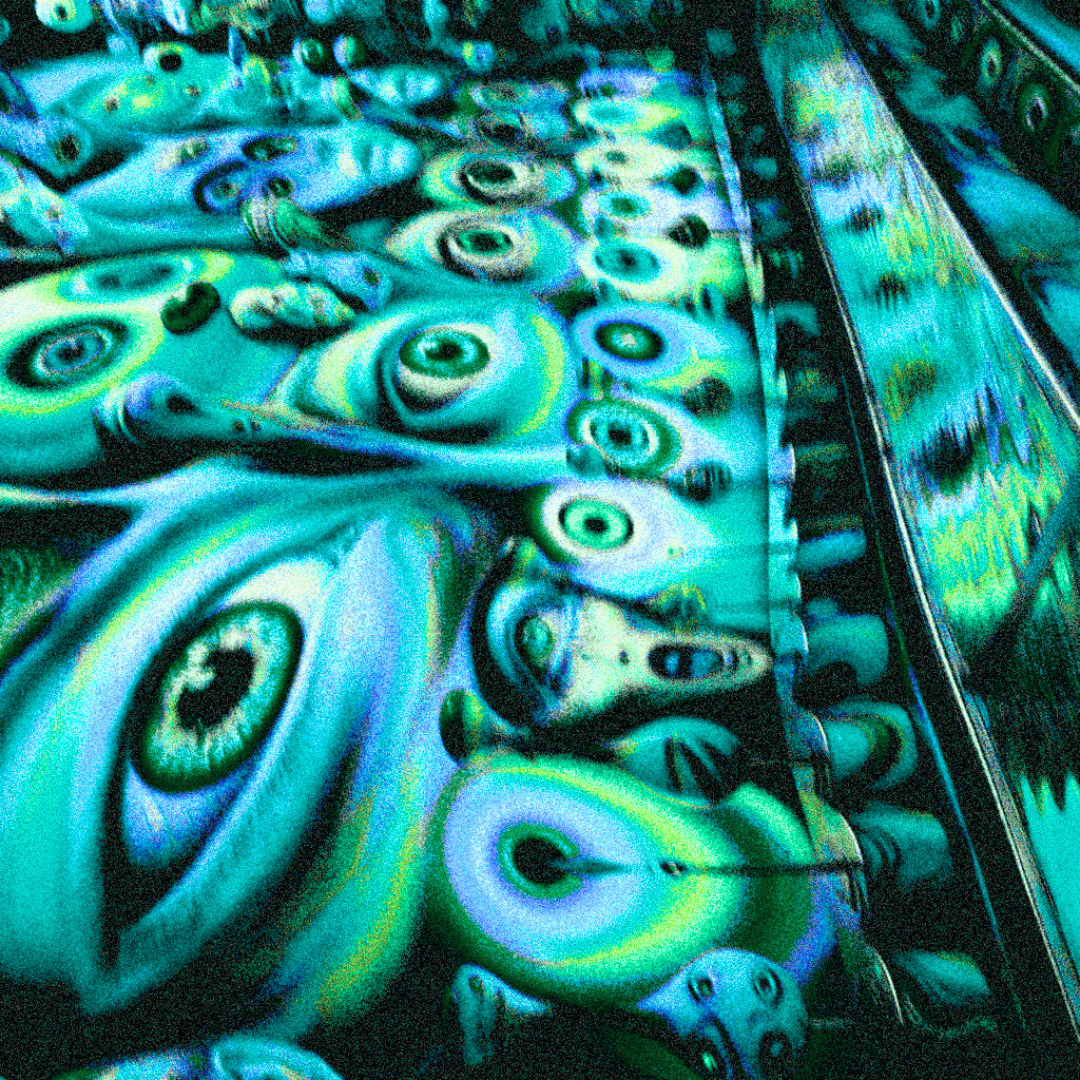 The artwork itself — an infinite wall of eyes peering on the same scene. Perhaps a reflection of the overlapping visions we may have— reflects this threshold. Each eye, a viewer and a gateway, stares into a unique slice of the multiverse, fracturing linear time and bending logic into overlapping domains. The piece becomes a mirror of the creative mind at the boundary: one foot in the now, the other scanning spectral futures.